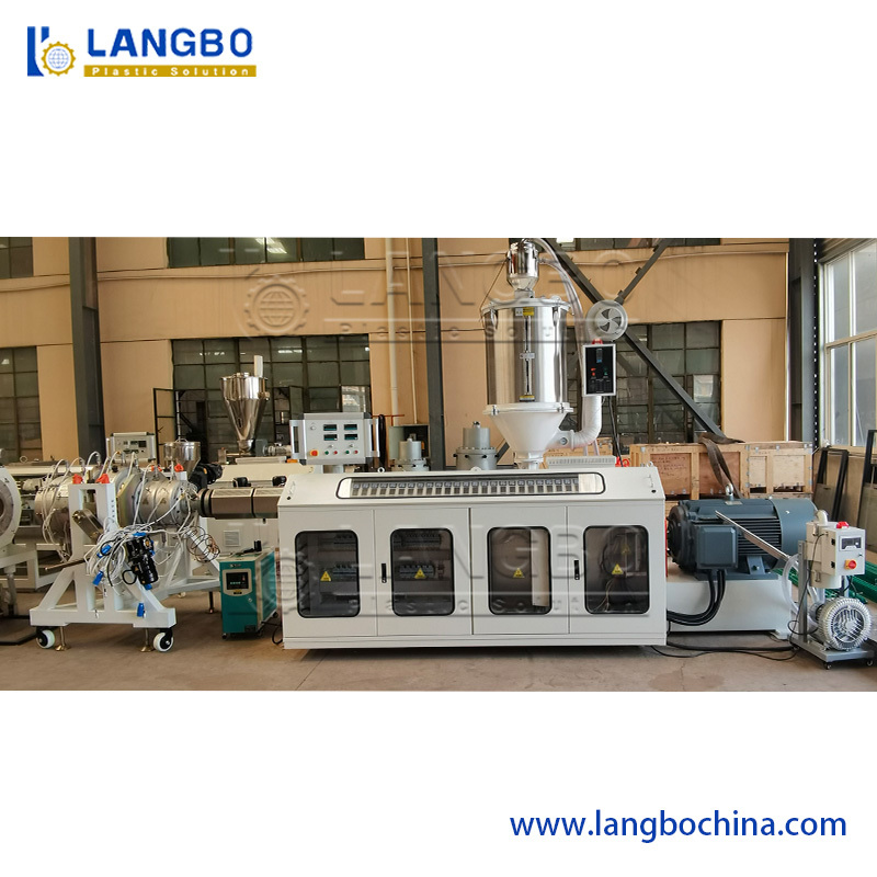 مواد → مخلوط کننده رنگ →غذای مواد →خرید کننده تک پیچ → قالب و کالیبراسیون اکستروژن → مخزن خنک کننده کالیبراسیون خلاء → مخزن خنک کننده اسپری → پرینتر → واحد برداشت →کننده →پاک کننده یا کویلر