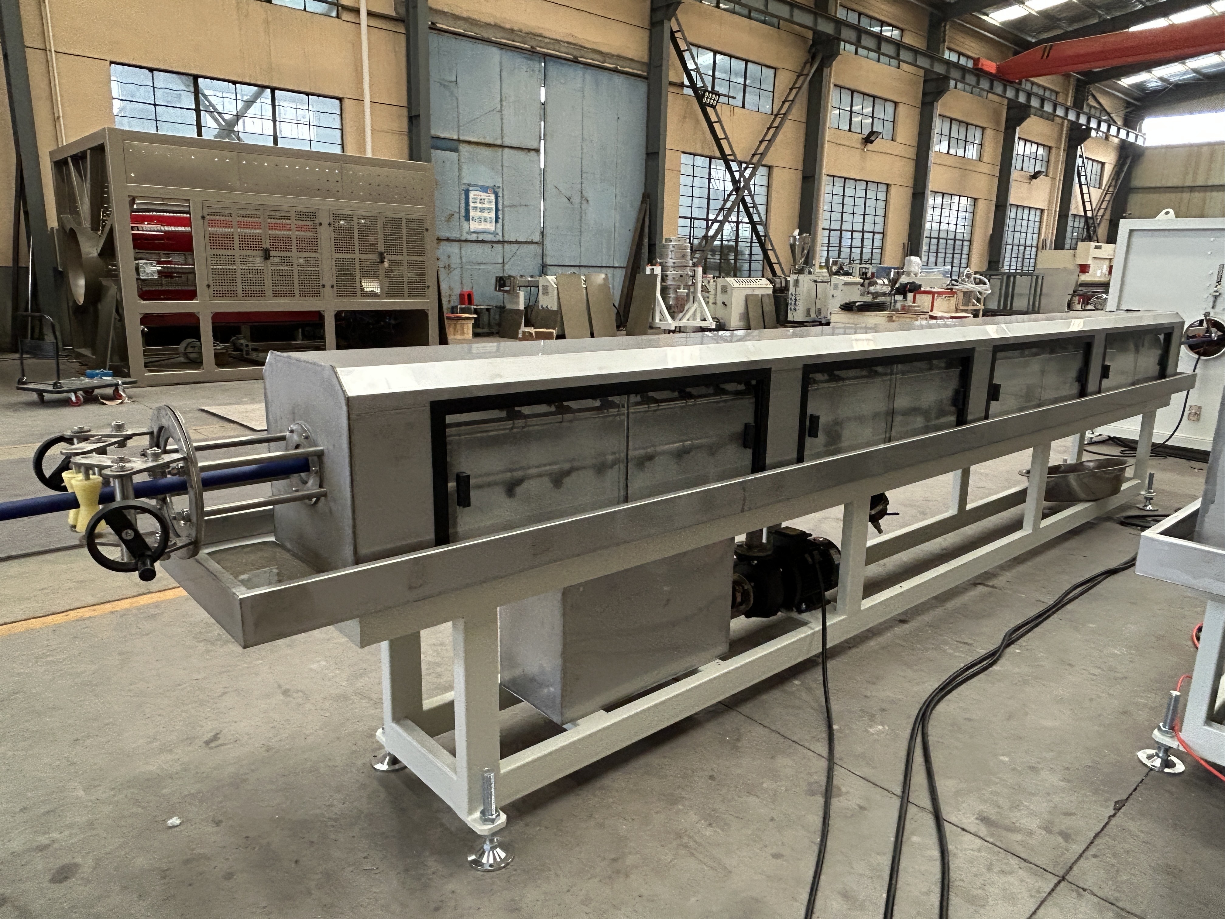 پلاستیک مذاب از طریق یک سر قالب عبور میکند تا لولهها/پروفیلها را تشکیل دهد، سپس وارد یک مخزن کالیبراسیون خلاء برای اندازهبندی و خنکسازی دقیق میشود.