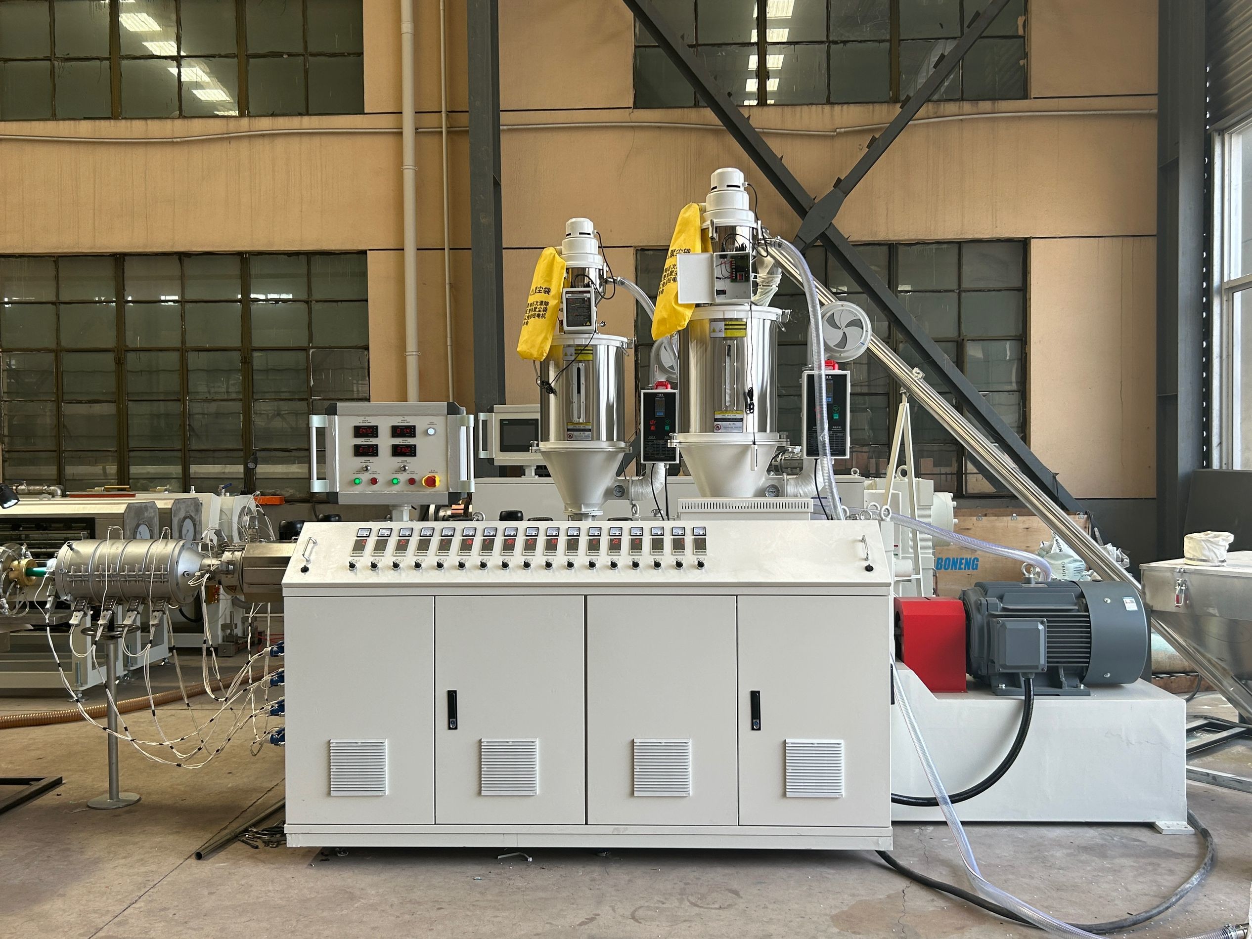 مواد اولیه (گرانول PPR/PVC، افزودنی ها) به طور خودکار وارد قیف می شوند و به طور یکنواخت مخلوط می شوند.